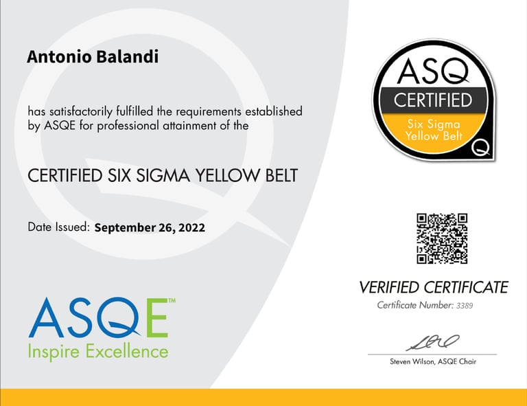 The Six Sigma Yellow Belt certification is an introductory level in the Six Sigma methodology, which focuses on improving quality and efficiency within organizations. Acquiring a certification in the Yellow Belt demonstrate a gain of a foundational understanding of Six Sigma principles, including the DMAIC (Define, Measure, Analyze, Improve, Control) framework used for problem-solving and process improvement. It focuses on identifying, monitoring, and controlling issues within projects and assisting in data collection and analysis efforts. Yellow Belts support Green and Black Belts by providing essential insights and working on smaller, well-defined projects to eliminate waste, reduce variation, and enhance overall performance. This certification emphasizes a practical approach to implementing quality improvement strategies and fosters a culture of continuous improvement within teams.